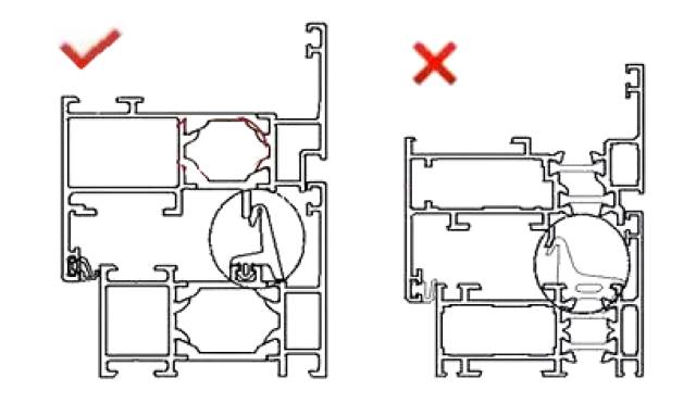 3. 窗扇应采用T型隔热条设计:窗扇隔热条设计为T型,与中间胶条搭接,实现扇框连接处冷热分区。禁止将中间胶条直接搭在扇的铝型材上。