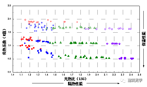 为了方便大家了解玻璃的热工参数分布,分享四种镀膜类型玻璃在三种典型玻璃组成结构条件下的K-LSG数据分布图如下,以供大家参考。大家可以更方便的在图中了解到,不同结构及玻璃镀膜种类对热工参数的影响。